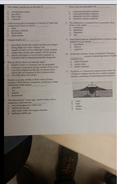 Solved Ash Cinders And Blocks Are All Types Of Pilw Lavas Chegg Com